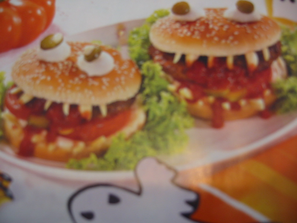 Vampi-Burger ! Mit dem Salat auf Tellern anrichten.
