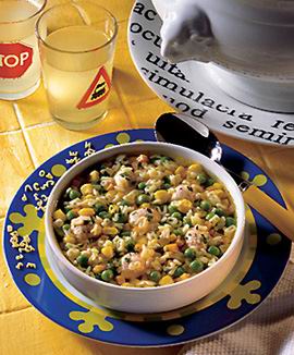 1 EL Öl 4 ungebrühte Kalbsbratwürste 500 g Möhren 1 Zwiebel 1 EL Butterschmalz 2 l Gemüsebrühe 250 g Buchstabennudeln 450 g TK-Erbsen 1 Dose Mais (Abtropfgewicht 285 g) etwas Salz etwas schwarzer Pfeffer aus der Mühle 1 Bund Petersilie |